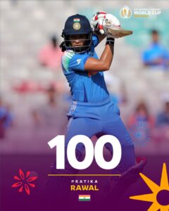 मुंबई, 23 अक्टूबर 2025:भारत और न्यूज़ीलैंड महिला टीमों के बीच खेले गए रोमांचक मुकाबले में भारतीय बल्लेबाज़ प्रतिका रावल ने शानदार प्रदर्शन करते हुए शानदार शतक (100 रन) जड़ा।